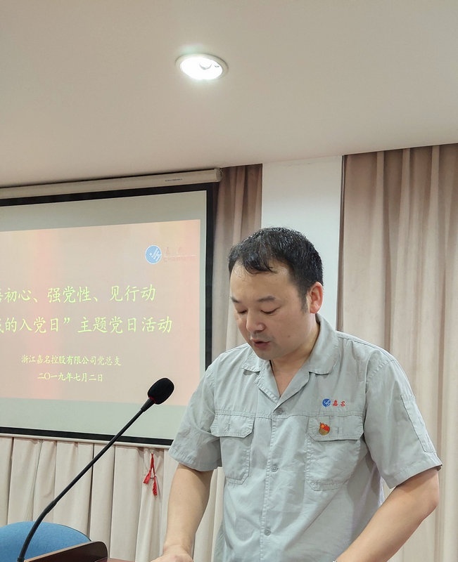 为庆祝中国共产党成立98周年,,,,,,,根据桐乡市委组织部关于各基层党组织今年“七一”开展“砥砺初心强使命,,,,,,,担当报国我先行”主题党日活动的要求,,,,,,,结合437必赢实际,,,,,,,在“七一”之际,,,,,,,公司党总支开展了悟初心、强党性、见行动“我的入党日”主题党日活动,,,,,,,公司全体党员参加。。。。。。主题党日活动由公司党建指导员吴纪联主持,,,,,,,首先由市十四届党代表、公司党总支委员蒋亚群领誓,,,,,,,全体党员重温入党宣誓,,,,,,,回顾入党宣誓时的庄严和坚定决心,,,,,,,增强党性意识,,,,,,,不忘入党初心,,,,,,,牢记党员使命,,,,,,,永葆共产党员的政治本色。。。。。。