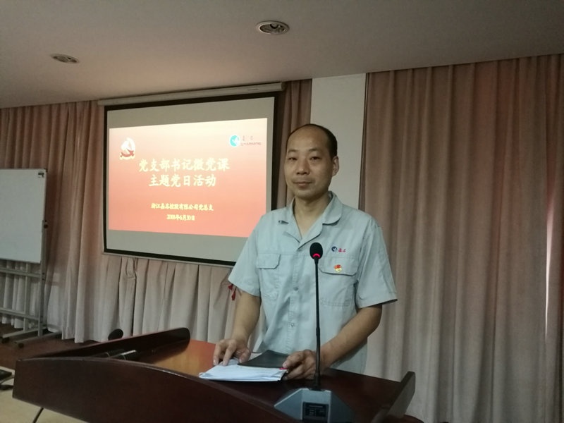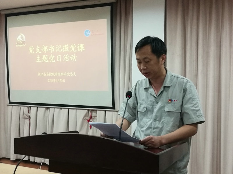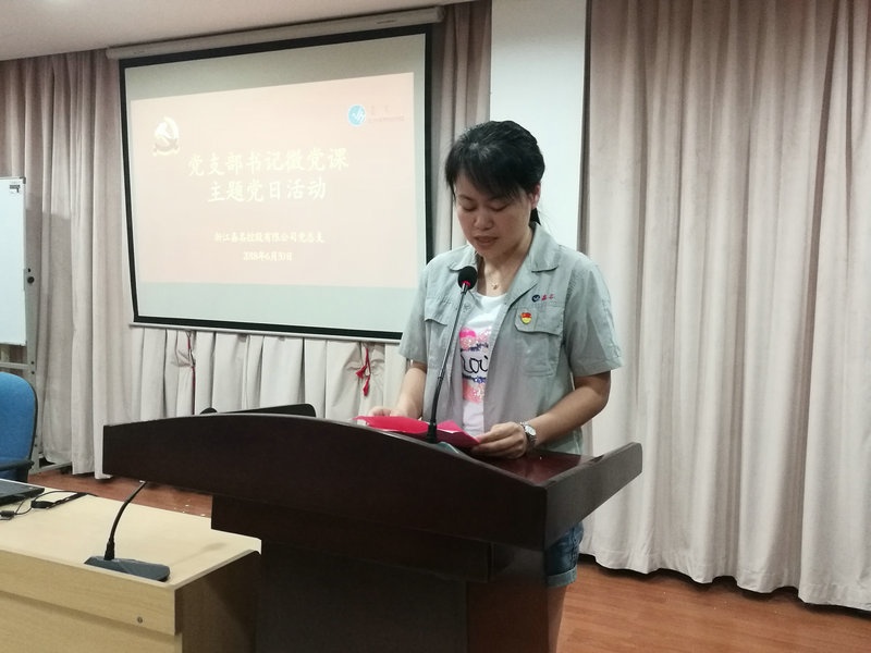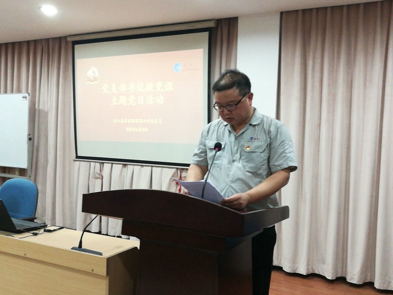 6月30日上午,,,,,,,,在公司党总支在行政三楼党建活动中心,,,,,,,,公司全体党员佩戴党徽聆听了四位党支部书记的微党课。。。。。党日活动由党建指导员吴纪联主持,,,,,,,,公司党总支书记莫炳荣出席并讲话。。。。。