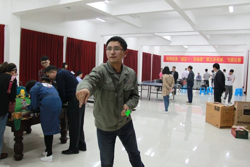 为庆祝五一国际劳动节,,,,,,,,4月28日晚,,,,,,,,由凤鸣街道总工会主办的“迎五一·劳动美”职工乒乓球、飞镖比赛在437必赢员工公寓区文化活动楼举行。。。。。