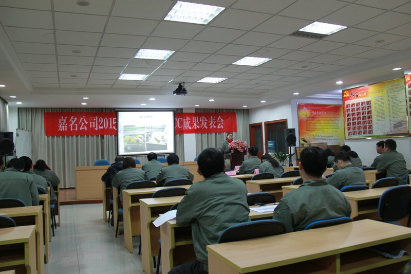 1月18日晚,,,,,公司召开了第九届(2015年第四季度)QCC成果发表会,,,,,来自6个部门的10项QCC成果在会上发表。。。。。。经评委打分评选,,,,,经编事业部改进组的《降低54D/24F盘头底部断纱率》等3个成果获一等奖,,,,,印花事业部水洗组的《提高丝光印花布表面均匀性》等3个成果获二等奖,,,,,检测中心内在品质组的《提升牢度及内在品质可达性控制水平》等四个成果获鼓励奖。。。。。。