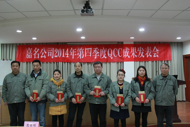 1月29日晚,,,,,,公司召开了第六届(2014年四季度)QCC成果发表会,,,,,,染整事业部等6个部门66名员工参与的12项QCC成果会上发表。。。。。。。动力设备部的“坯布喷蒸汽机的自动化改造”,,,,,,染整事业部的“降低成品布内在指标的返修率”、“控制印花底布PH值的稳定性”、“降低染化料成本”,,,,,,经编事业部的“提高90克丝光绒成品检验合格率”,,,,,,纺织事业部的“减少坯布剪办浪费”获得优秀奖。。。。。。。染整事业部的“改善毛圈布横向弹性”,,,,,,动力设备部的“定型机整纬改装”,,,,,,品质管理部的“提高检测中心测试进度”、“降低入仓错误率”,,,,,,印花事业部的“提高分散印花浆料的稳定性”、“提高印花打样配方的准确性”获得发表奖。。。。。。。这次发表的QCC成果共有QC小组活动。。。。。。。