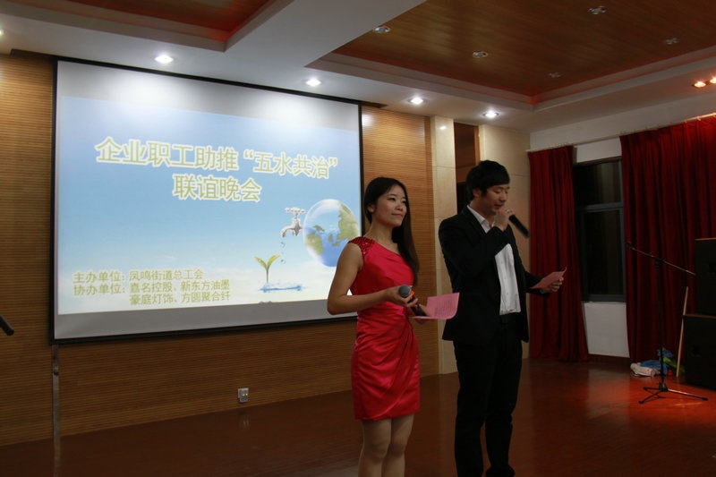 4月29日晚,,,,,,,,由凤鸣街道总工会主办,,,,,,,,“437必赢控股”、“新东方油墨”、“豪庭灯饰”、“方圆聚合纤”协办的“企业职工助推`五水共治'联谊晚会”在437必赢公司员工公寓区举行。。。。。。。。晚会活动围绕“五水共治”,,,,,,,,职工青春奉献的主题,,,,,,,,宣传“五水共治”,,,,,,,,体现企业职工积极参与“五水共治”活动,,,,,,,,整个晚会洋溢在热烈、欢快的氛围中。。。。。。。。来自四家企业的职工和凤鸣街道驻村干部表演了自编自演的快板、三句半、诗朗诵、唱歌等各类节目,,,,,,,,晚会中还穿插了趣味游戏和知识抢答节目。。。。。。。。437必赢公司姚卫良、姚鸿、钱珍、吴耀等表演的“‘五水共治’生态美”三句半赢得了观众的热烈掌声,,,,,,,,晚会在437必赢公司平晓红歌唱的《爱的奉献》中结束。。。。。。。。