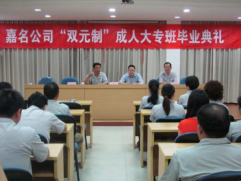 在毕业典礼上,,,,,,,,公司董事长、总经理莫炳荣发表了热情洋溢的讲话,,,,,,,,他说:今天我们高兴地举行“双元制”成人大专班毕业典礼,,,,,,,,53名学员通过近三年的努力,,,,,,,,今天终于获得了浙江工业职业技术学院大专毕业证书,,,,,,,,实践了人生历程中的一次大跨越。。。。。。。。首先我们要感谢桐乡市高级技工学校的领导和老师,,,,,,,,感谢浙江工业职业技术学院及其他学院教授的辛勤劳动和付出;;;;;437必赢的全体学员坚忍不拔、持之以恒、刻苦学习,,,,,,,,成为了一名大专生,,,,,,,,我向你们表示衷心的祝贺;;;;;希望你们将这系统化的理论学习,,,,,,,,能学以致用,,,,,,,,把所学的知识运用到工作实践中,,,,,,,,理论联系实际,,,,,,,,不断提高自我,,,,,,,,提高技能和工作质量,,,,,,,,在生产、经营、管理的各个岗位上再创佳绩。。。。。。。。